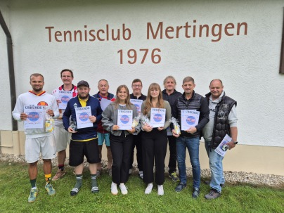 Mathias Fliegen hat bei den Clubmeisterschaften des Tennis-Vereins seinen Titel verteidigt. Acht Doppelpaarungen und 16 Teilnehmer im Einzel spielten um den Titel Clubmeister des TC Mertingen. Im Doppel wurden die Halbfinalpaarungen in zwei Vierergruppen ermittelt. Im ersten Halbfinale trafen Markus Hörbrand/Daniel Schmid auf Bastian Bahr/Nick Stein. Hörbrand/Schmid gewannen klar in zwei Sätzen mit 6:0 und 6:2. Im zweiten Halbfinale setzten sich Felix Fuhr/Mario Stein knapp gegen Karl Fleischmann/Janic Kienzle mit 4:6, 7:5 und 10:5 durch. Das Endspiel wurde erst im Match-Tiebreak entschieden. Beim Stande von 6:9 wehrten Hörbrand/Schmid drei Matchbälle ab und gewannen am Ende glücklich mit 11:9 gegen Fuhr/Stein. Im Trostrundenfinale des Herren-Einzels standen sich Richard Harlacher und Joe Wöhnl gegenüber. Nach verlorenem ersten Satz drehte Harlacher das Spiel zu seinen Gunsten und gewann am Ende mit 3:6, 7:6 und 10:8.