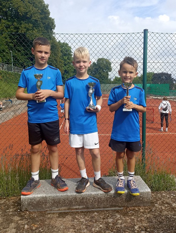 Im Kleinfeld belegten bei der männlichen U9 Konkurrenz die beiden achtjährigen Nikolas Mittring und Linus Förster die Plätze zwei und drei. Bei engen, spannenden und vor allem spielerisch sehr starken Partien mussten sich die Mertinger lediglich dem späteren, verdienten Sieger Matts Wittner vom TC Nördlingen geschlagen geben. Emil Brosch erreichte bei der U7 männlich als jüngster Mertinger nach drei souveränen Siegen sogar den ersten Platz.